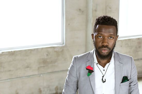Pages Matam is a Black person and genderqueer with dark brown skin posing in front